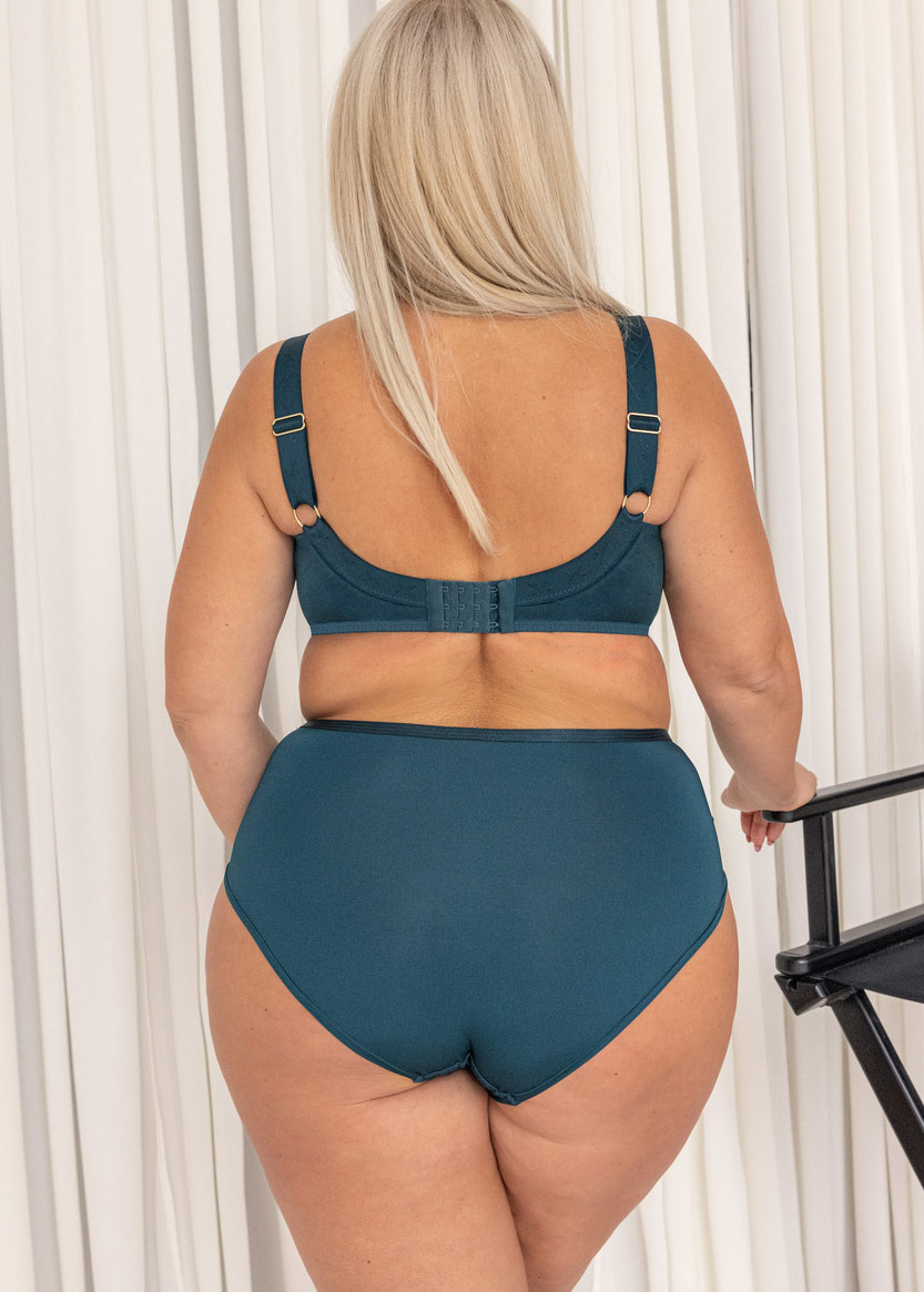 Основа изделия - приятная к телу микрофибра бежевого цвета, по верху декорирована мягким кружевом изумрудного цвета.